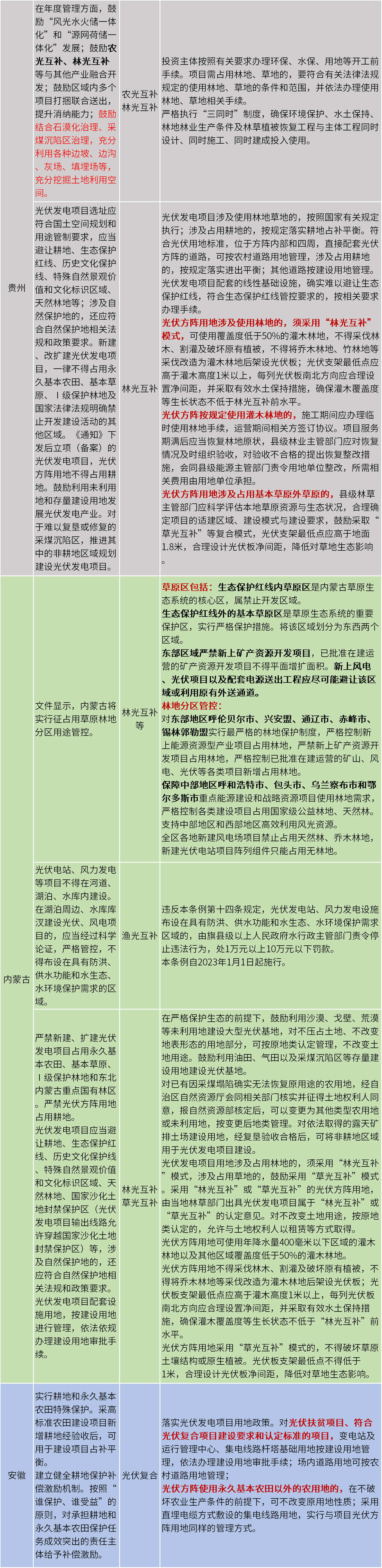 此外,內蒙古、寧夏中衛市、山東、河北、江西、江蘇、江蘇泰州姜堰區、甘肅、山西、貴州10地出臺了光伏用地相關政策。